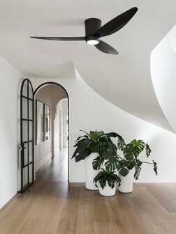 Moderne zwarte plafondventilator met zuinige ledlamp