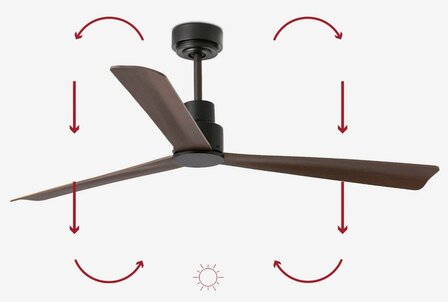 De Faro Barcelona Nassau M plafondventilator bruin 128 cm is een strakke en moderne plafondventilator. Met een diameter van 128 cm en drie houten bruine bladen van multiplex is deze plafondventilator geschikt voor ruimtes van 13 tot 17,6 vierkante meter. De behuizing is gemaakt van staal en heeft dezelfde bruine kleur. Deze plafondventilator wordt aangedreven door een stille DC-motor en heeft zes verschillende windsnelheden. Hiermee kun je de luchtstroom precies afstemmen naar wens. De plafondventilator verplaatst tot wel 222,41 kubieke meter lucht per minuut. De ventilator heeft geen verlichting en is eenvoudig te bedienen met de meegeleverde afstandsbediening. Daarnaast heeft de plafondventilator zowel een zomer- als winterstand. De winterstand zorgt ervoor dat de warme lucht snel en gelijkmatig door de ruimte wordt verspreid, zodat je sneller een aangename temperatuur in de ruimte bereikt. Wist je dat je met de winterstand tot wel 10% kunt besparen op verwarmingskosten? De Faro Barcelona Nassau M plafondventilator kan eenvoudig gemonteerd worden, zelfs op schuine plafonds tot een maximale hellingshoek van 25 graden. Door de IP20 waterdichtheid is de ventilator alleen geschikt voor binnengebruik.