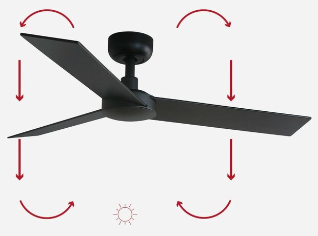 bladen zijn omkeerbaar, zodat je kunt kiezen tussen een zwarte of walnoot kleur. Je bedient de plafondventilator eenvoudig met de meegeleverde afstandsbediening. Met de zomer- en winterstand kun je de plafondventilator het hele jaar door gebruiken. De